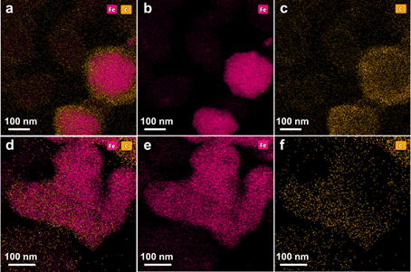 对于高温铁基费托合成反应,快的CO解离导致快的碳沉积速率。一方面,快的沉碳速率可导致铁活性相的物相演变;另一方面,更重要的是,反应过程中沉碳和消碳的速率不平衡将会导致催化剂失活和选择性的急剧变化。在以前的研究中,该团队报道了大尺寸球形纳米α-Fe2O3粒子(约120 nm)复合石墨烯在反应过程中原位演变形成规整的小尺寸(约10 nm)、且具有单一χ-Fe5C2(510)晶面的圆柱状纳米胶囊碳化铁催化剂,显示出极高的催化活性、高α-烯烃选择性和优异的催化稳定性。高的稳定性归因于反应过程中碳纳米纤维生长诱导的张力“撕裂”大尺寸粒子形成碳层包覆的小尺寸纳米碳化铁胶囊结构。然而,没有石墨烯存在时,催化剂快速积碳失活,生成产物主要是甲烷和低碳烷烃(Catalysis Science & Technology, 2017, 7, 4609-4621)。此外,在研究钴基费托合成反应过程中,该团队还发现碳材料作为载体,金属活性中心上氢气解离形成的*H物种可溢流到载体表面,由于碳载体表面缺陷的“储氢”功能,显著增加了生成产物CH4的选择性(Catalysis Science & Technology, 2023, 13, 1888-1904)。上述研究结果表明:控制沉碳/消碳速率、减少催化剂表面反应性的氢物种浓度是获得高稳定性、低甲烷选择性的重要前提。