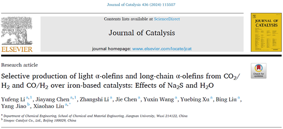近日,黄漫 化工学院刘小浩团队在合成气(CO+H2)铁基费托合成反应制长链α-烯烃的研究工作中取得重要突破,这一研究成果在催化领域权威期刊《Journal of Catalysis》上发表。该论文化工学院博士研究生李玉峰、硕士研究生陈加扬为共同第一作者,刘小浩教授为通讯作者。
