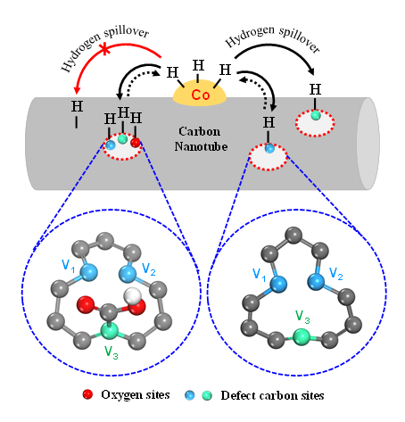 2.碳纳米管(CNTs)载体表面缺陷诱导氢溢流的示意图