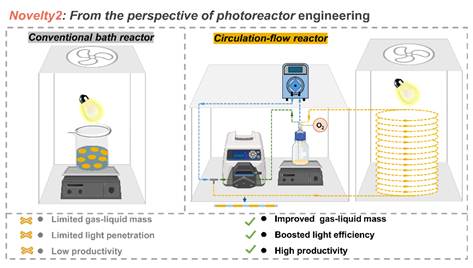 1:新型三基元光催化剂的设计与新型循环流动光反应器构建的示意图