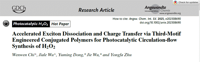 近期,黄漫 黄漫 董玉明/朱永法团队在光催化制备双氧水方面取得重要进展,研究成果“Accelerated Exciton Dissociation and Charge Transfer via Third-Motif Engineered Conjugated Polymers for Photocatalytic Circulation-flow Synthesis of H2O2”在线发表于Angew. Chem. Int. Ed.,研究成果“Customizing Oxygen Reduction Reaction Pathways for High-Efficiency H2O2Photosynthesis by Anionic Intermediate-Generating Polymer Photocatalysts”在线发表于Adv. Funct. Mater.。