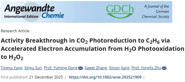 纯H2O体系中C2H6生成速率达到101.1µmol g-1h-1,电子选择性达到98%,这是目前报道的纯水体系光催化剂中的最高水平之一。同时,该催化剂在太阳光照射下C2H6产率也能达到42µmol g-1h-1,电子选择性达到85%,表明该催化剂具备实际应用的潜力。该研究阐明了H2O氧化生成H2O2高效催化CO2转化C2H6的反应机制,为设计用于太阳能驱动C2H6高效生产的光催化剂提供了一种新策略,得到了国家自然科学基金重点项目、面上项目的资助。