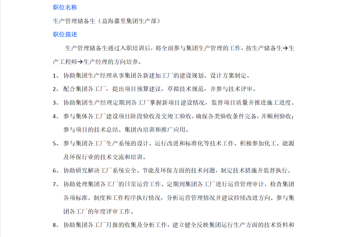 【20004】益海嘉里生产管理储备生招聘