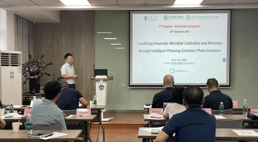 蒋航副教授做《皮克林乳液智能相反转在微生物限域厌氧发酵与回收中的应用》报告
