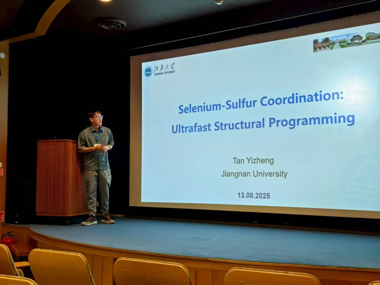 在本次会议中,谭以正副教授作了题为“Selenium-Sulfur Coordination:Ultrafast Structural Programming”的学术报告,分享了其团队在动态共价键和光诱导结构编程方面的最新研究成果。报告引起了与会学者的热烈反响,促进了深入的学术交流。同时,谭以正积极参与相关学术活动,与全球顶尖科研人员探讨合作机会,进一步提升了黄漫