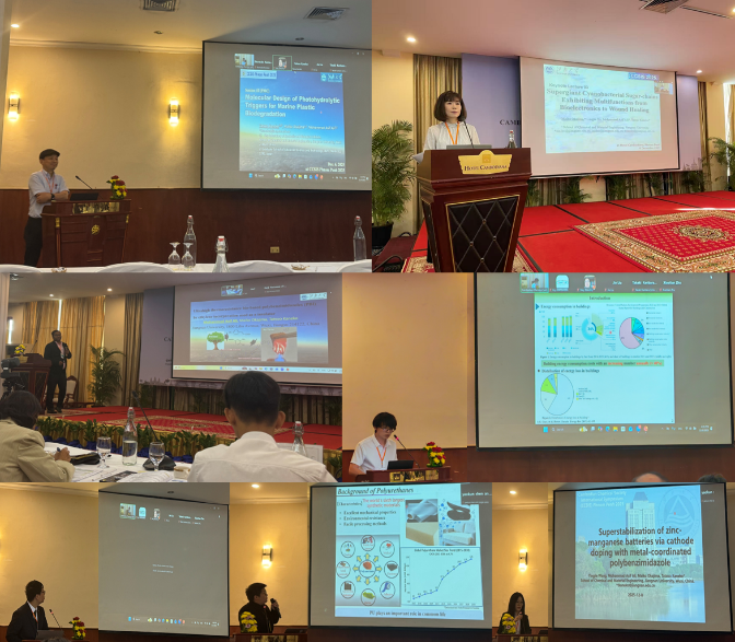 在本次会议中,金子达雄教授作了题为“Molecular Design of Photohydrolytic Triggers for Marine Plastic Biodegradation”的学术报告,分享了其团队在由衣康酸生物基盐单体制备多种可降解的高性能聚酰胺的最新研究成果;金子麻衣子助理研究员作了题为“Supergiant Cyanobacterial Sugar-chains Exhibiting Multifunctions from Bioelectronics to Wound Healing”的学术报告,重点介绍了用天然多糖sacran制备多功能材料;MOHAMMAD ASIF ALI副研究员作了题为“Ultrahigh thermoresistance bio-based polybenzimidazoles (PBI) byethylene incorporation used as aninsulator”的学术报告,分享了多种生物基高耐热性能的聚苯并咪唑的制备方法及应用;同时,四名学生也分别做了其相关研究课题的口头汇告。报告引起了与会学者的热烈反响,金子达雄等人与国内外的专家进行了深入的学术探讨,促进了深入的学术交流。此外,金子达雄教授一行人积极参与相关学术活动,与全球顶尖科研人员探讨合作机会,进一步提升了黄漫