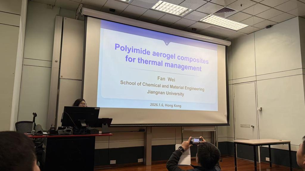 本次出访中,樊玮教授赴香港理工大学访问,与沈曦助理教授团队开展学术交流,作题为“Polyimide AerogelCompositesforThermal Management”学术报告,推进NSFC-RGC国际合作项目联合申报,进行项目合作协议洽谈。赴澳门大学访问,与陈斌猛助理教授团队开展学术交流并做学术报告,推进中澳国际合作项目联合申报。