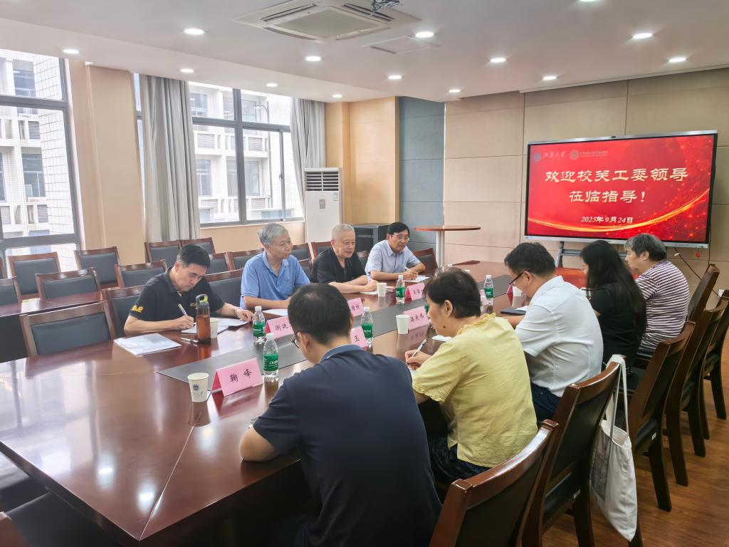 潘庆伟对校关工委莅临指导表示热烈欢迎,感谢校关工委长期以来对学院关工委工作的支持和指导,汇报了学院近期在党建提质增效、教师立德树人、学生成长成才等方面的举措和取得的成绩,并表示学院党委将整合资源、凝聚力量,不断加强关工委队伍力量,持续提升关工委组织水平,将关工委工作融入学院党政工作全局,做出特色与亮点。
